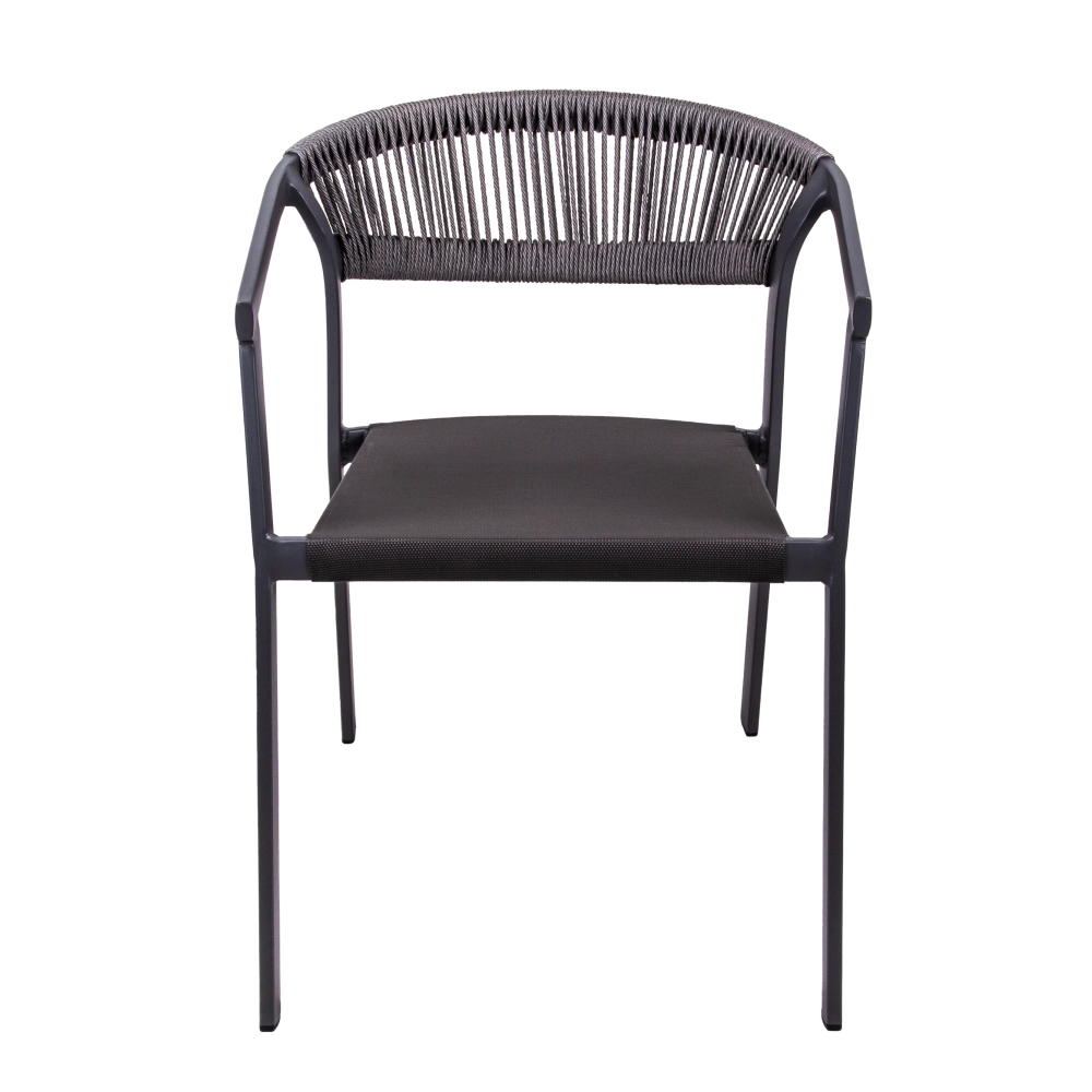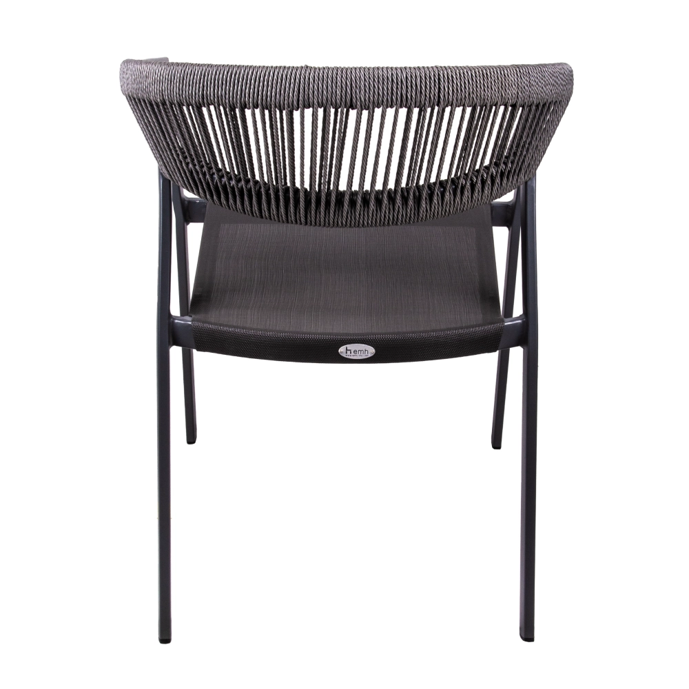 La chaise de terrasse Vally est la chaise confortable et dans l'air du temps avec son dos en cordage.