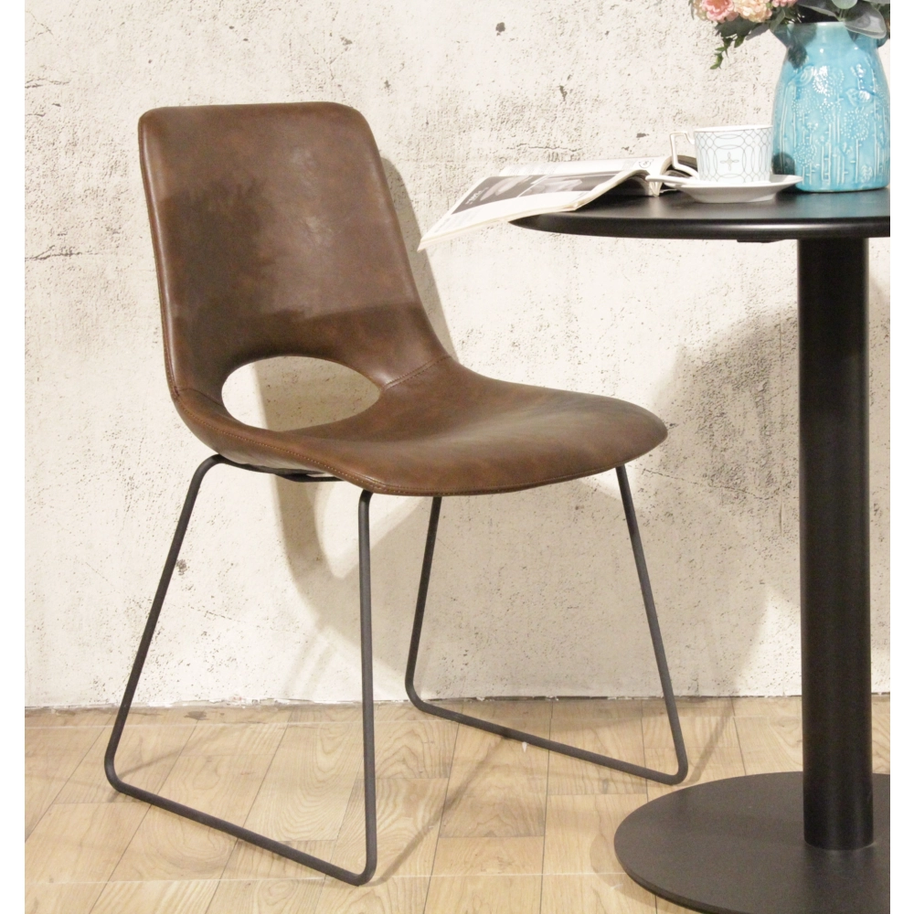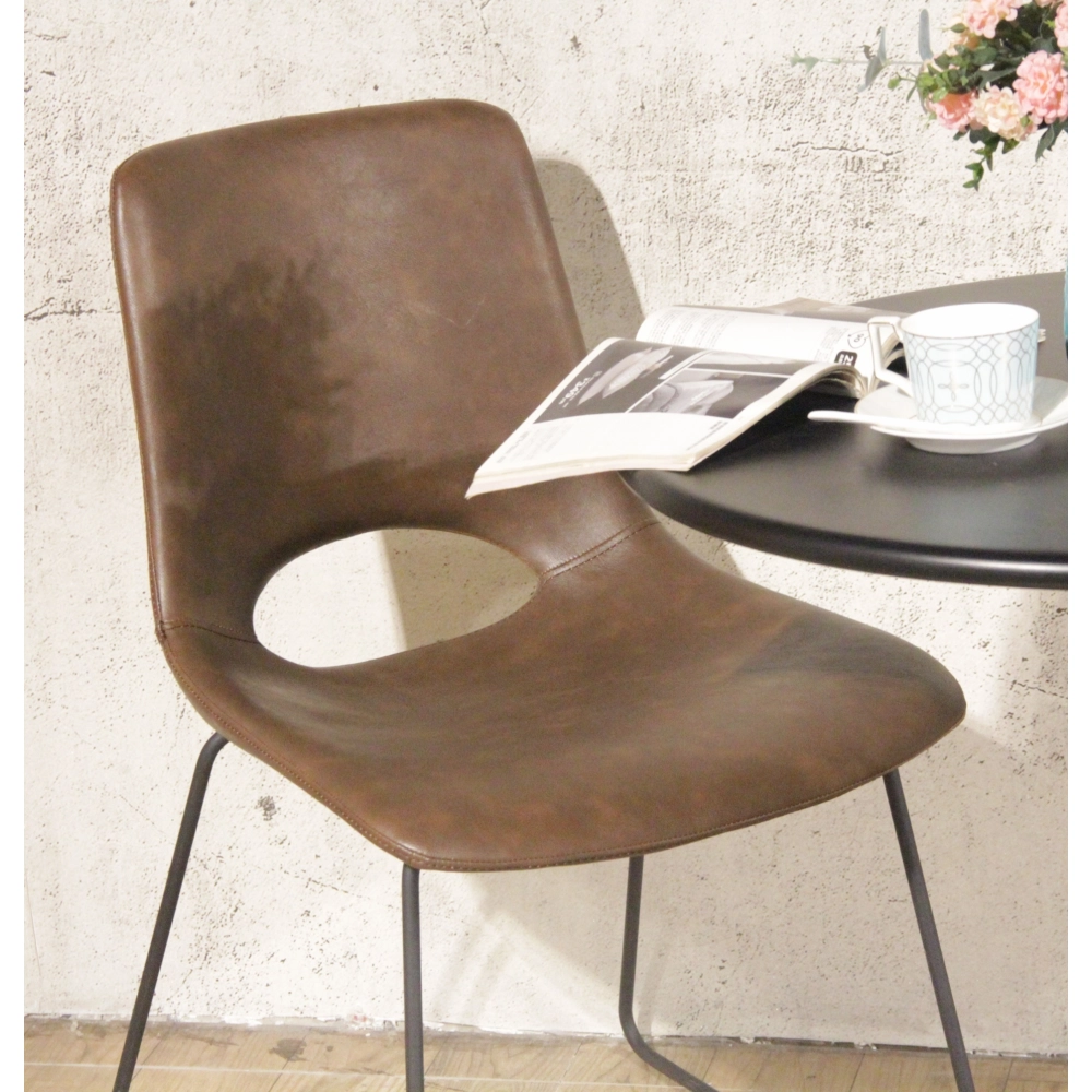 Cette chaise RODEO combine un style vintage avec une structure robuste en acier et un revêtement en cuir synthétique marron. Son piètement de type luge lui confère une allure moderne et élégante.